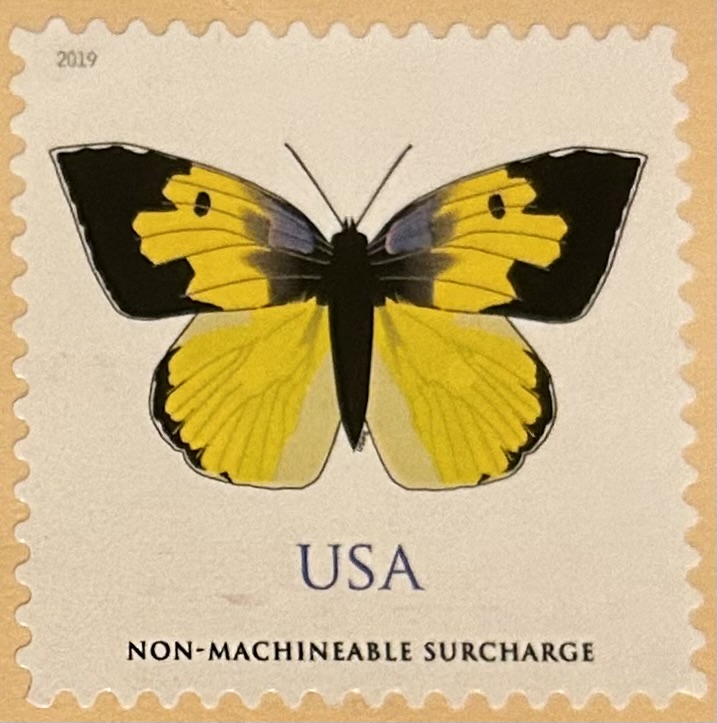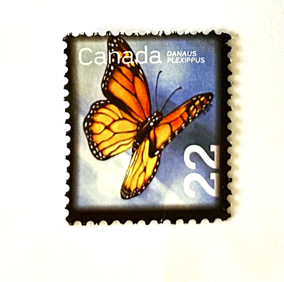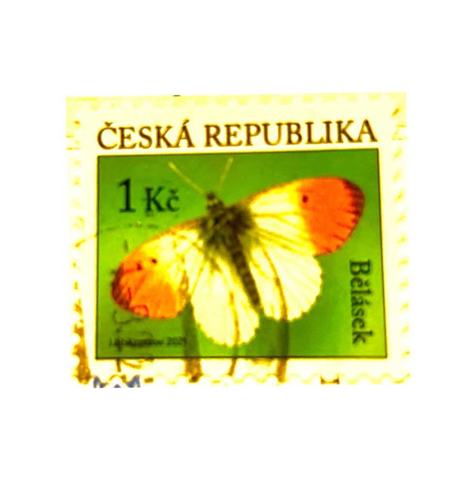 The monarch butterfly or simply monarch (Danaus plexippus) is a milkweed butterfly in the family Nymphalidae. Other common names, depending on region, include milkweed, common tiger, wanderer, and black-veined brown.Zerene cesonia, the southern dogface, is a North and South American butterfly in the family Pieridae, subfamily Coliadinae.Anthocharis cardamines, the orange tip, is a butterfly in the family Pieridae, which contains about 1,100 species. A. cardamines is mainly found throughout Europe and temperate Asia The males feature wings with a signature orange pigmentation, which is the origin of A. cardamines’ common name. Interestingly, on the stamp, the word “Belasek” means simply ‘the white type”The Mission blue is a blue or lycaenid butterfly subspecies native to the San Francisco Bay Area of the United States. The butterfly has been declared as endangered by the US federal government. It is a subspecies of Boisduval’s blue. The word Modrasek” on the stamp means “blueberry”
