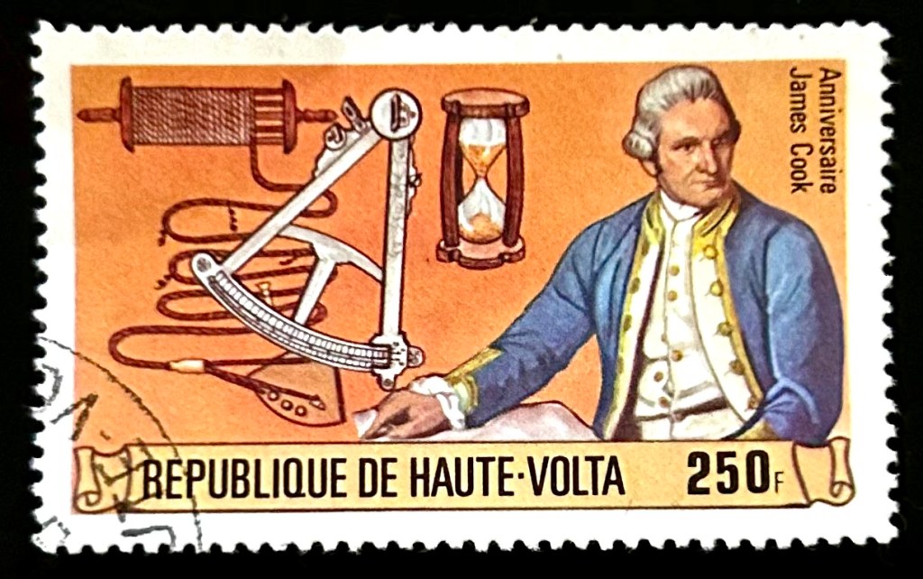Upper Volta – 1978 Captain James Cook. Captain James Cook FRS was a British explorer, cartographer and naval officer famous for his three voyages between 1768 and 1779 in the Pacific Ocean and to New Zealand and Australia in particular