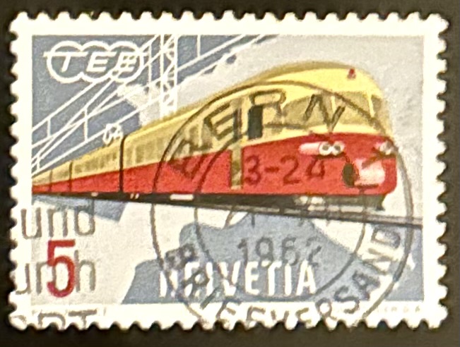 Switzerland – 1962 Swiss Electric Train TEE on Europe map.