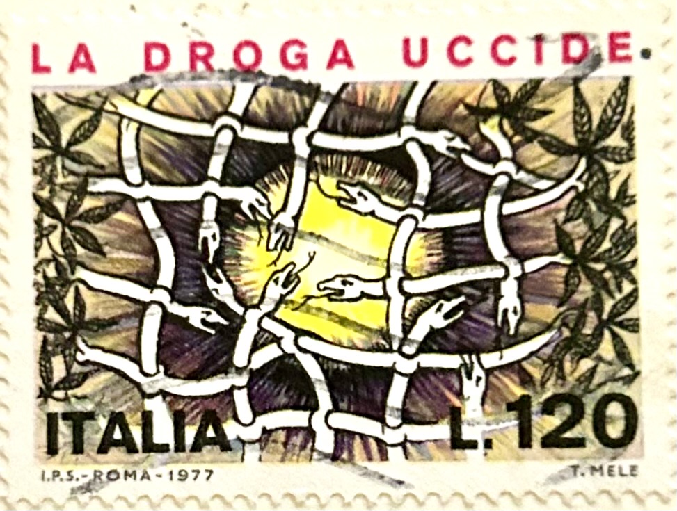 Italy – 1976 Campaign against Drugs (top writing reads “Drugs Kill”)