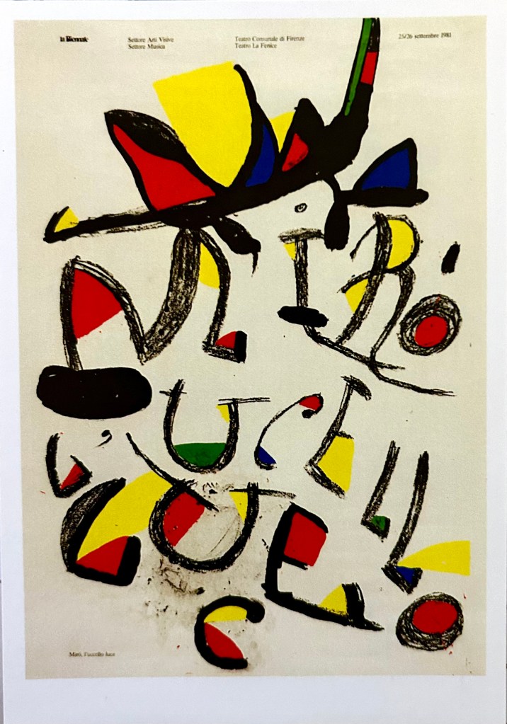 January 28, 2024August 8, 2024 marina Joan Mirò Postcard from USA Mirò, l’Uccello Luce 1981 – La Biennale di Venezia 2023 sARTurday Share this: Share on Facebook (Opens in new window) Facebook Share on Pinterest (Opens in new window) Pinterest More Email a link to a friend (Opens in new window) Email Share on Tumblr (Opens in new window) Tumblr Share on X (Opens in new window) X Like Loading... Related