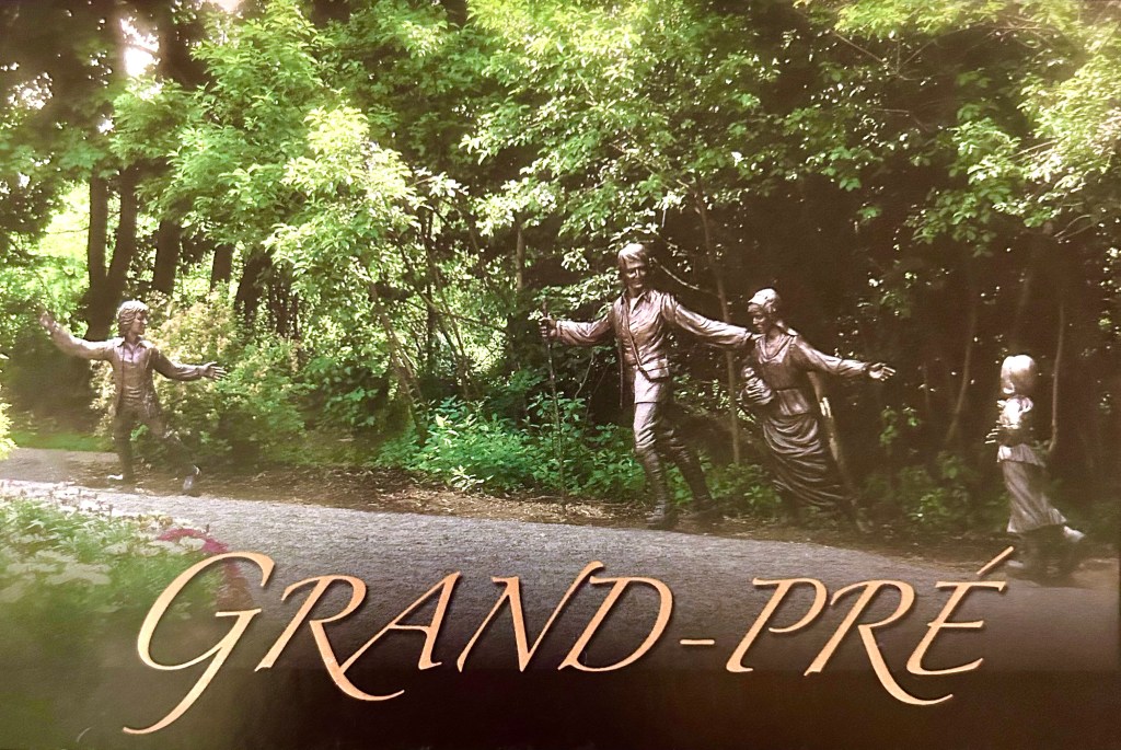 Grand-Pré is a Canadian rural community in Kings County, Nova Scotia. Its French name translates to “Great/Large Meadow” and the community lies at the eastern edge of the Annapolis Valley. The community was made famous by Henry Wadsworth Longfellow’s poem Evangeline and is today home to the Grand-Pré National Historic Site. On June 30, 2012, the Landscape of Grand-Pré was named a World Heritage Site by UNESCO. This sculpture, by artists Jules LaSalle and André Fournelle, depicts an Acadian family during the Deportation of thousands of Acadians from their ancestral homeland between 1755 and 1763.