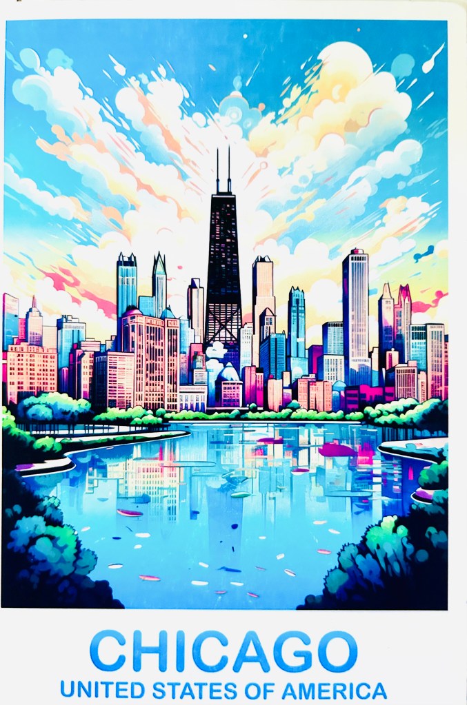 I like the composition of the Chicago card, it makes it look like a utopia from the future. In contrast the lake looks like a place to chill out.