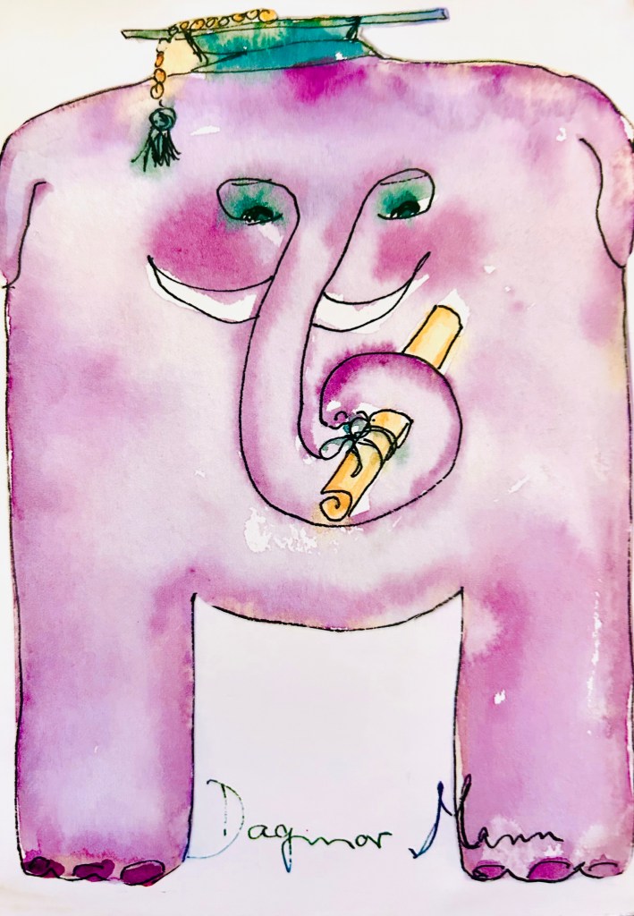 July 26, 2025July 22, 2025 marina Graduating Elephant Postcard from USA Art by Dagmar Mann sARTurday Share this: Click to share on Facebook (Opens in new window) Facebook Click to share on Pinterest (Opens in new window) Pinterest More Click to email a link to a friend (Opens in new window) Email Click to share on Tumblr (Opens in new window) Tumblr Click to share on X (Opens in new window) X Like Loading... Related