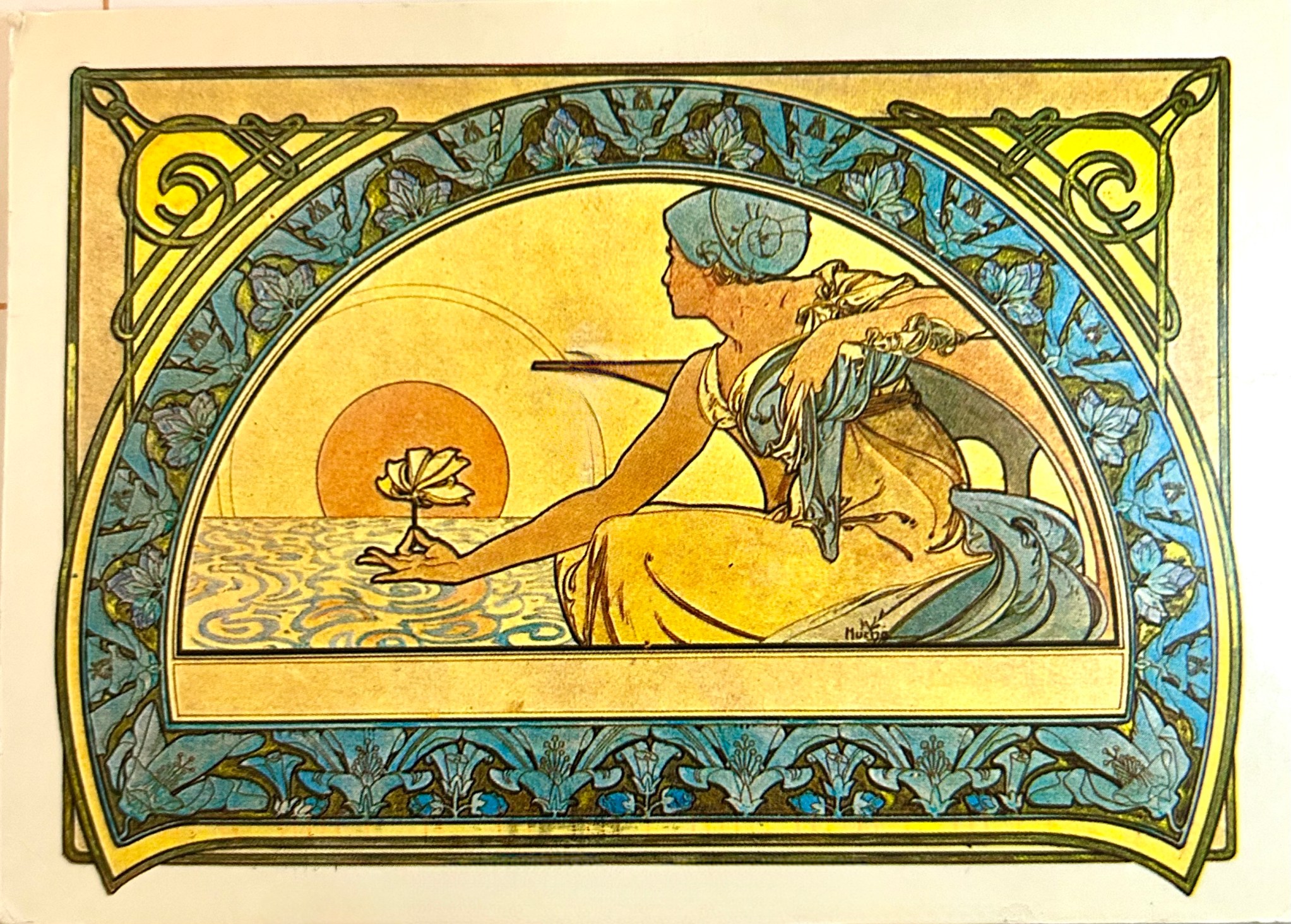 Alphonse Mucha – Nenuphar (water lily). Alphonse Mucha, was a Czech painter, illustrator, and graphic artist. Living in Paris during the Art Nouveau period, he was widely known for his distinctly stylized and decorative theatrical posters, particularly those of Sarah Bernhardt.