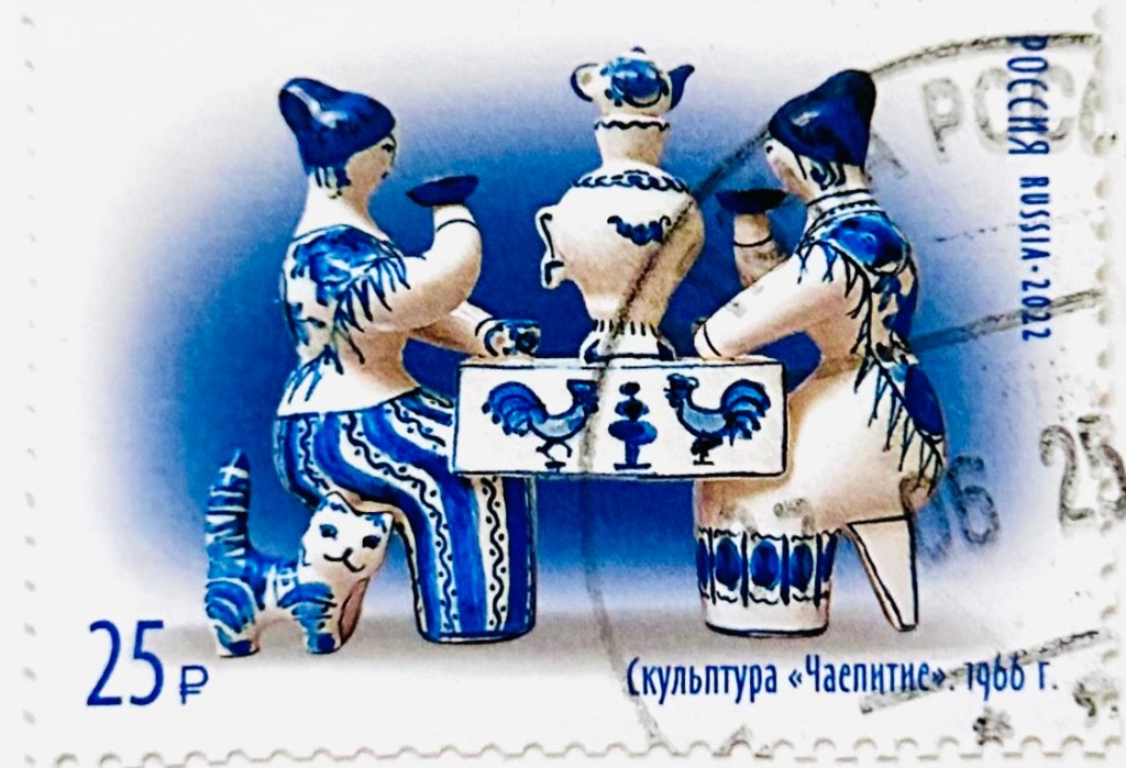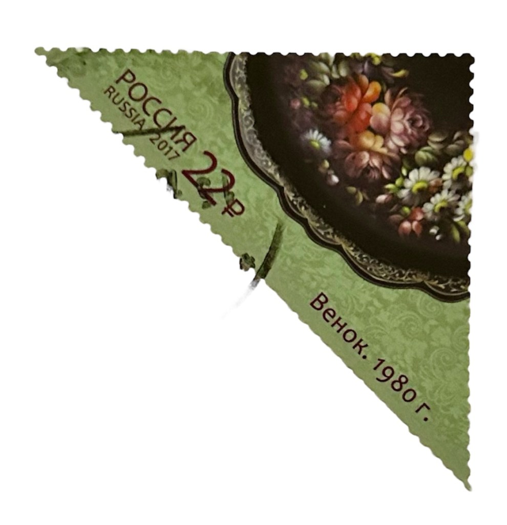 The postal stamps provide images of boxes from the collection of the Moscow Regional Museum of Folk Art Crafts: Tea Party (1946) by V.I. Lavrov; The Firebird (1959) by S.V. Monashov; Ruslan and Lyudmila (1971) by M.S. Chizhov; and Ivan da Marya (1989) by Yu.V. Dotsenko.
