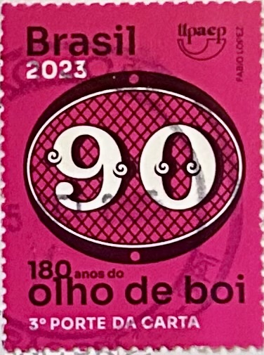 Brazil – 2023 90 Reis Stamp of 1843 (series: UPAEP 2023: Bull’s Eye Stamps, 180 Years). UPAEP, the Union Postal de las Américas, España y Portugal, is a postal union where countries issue joint stamps for shared themes