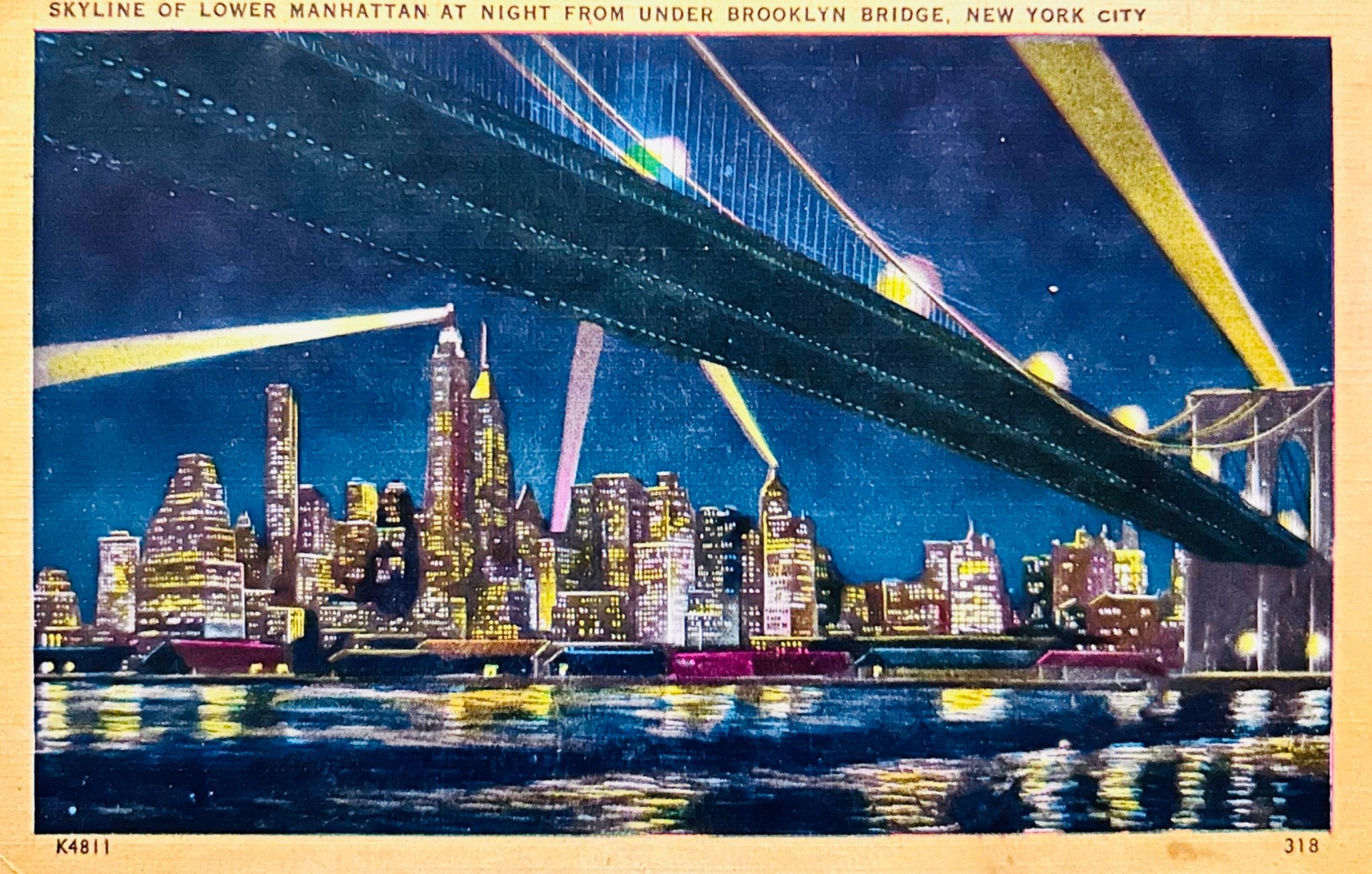Really clear water in the two first postcards. I like the standing tree, too. From the Manhattan postcard, what attract me the most are the colours.