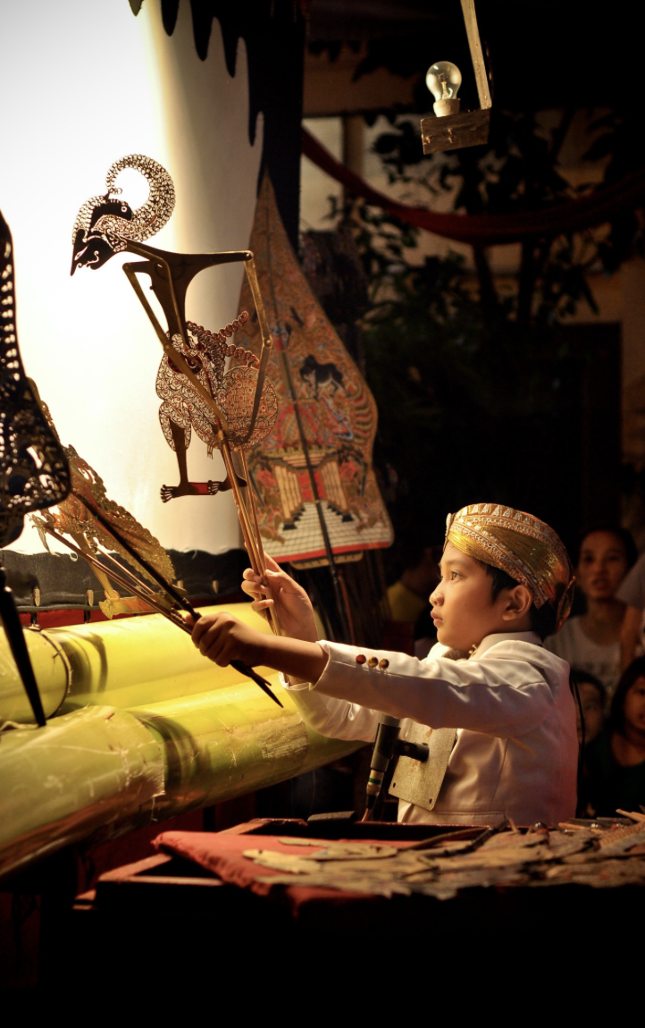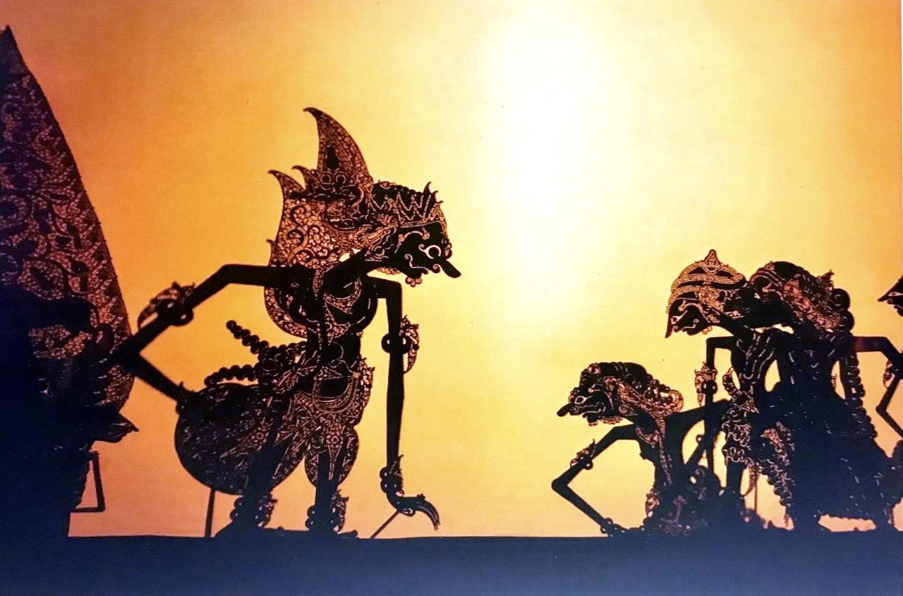 Wayang kulit is a traditional form of shadow puppetry originally found in the cultures of Java and Bali in Indonesia. In a wayang kulit performance, the puppet figures are rear-projected on a taut linen screen with a coconut oil light.