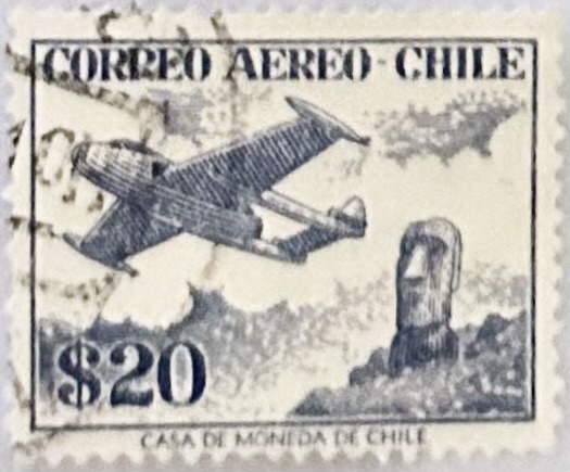 Chile – 1956 De Havilland Venom FB.4 airplane and Easter Island monolith