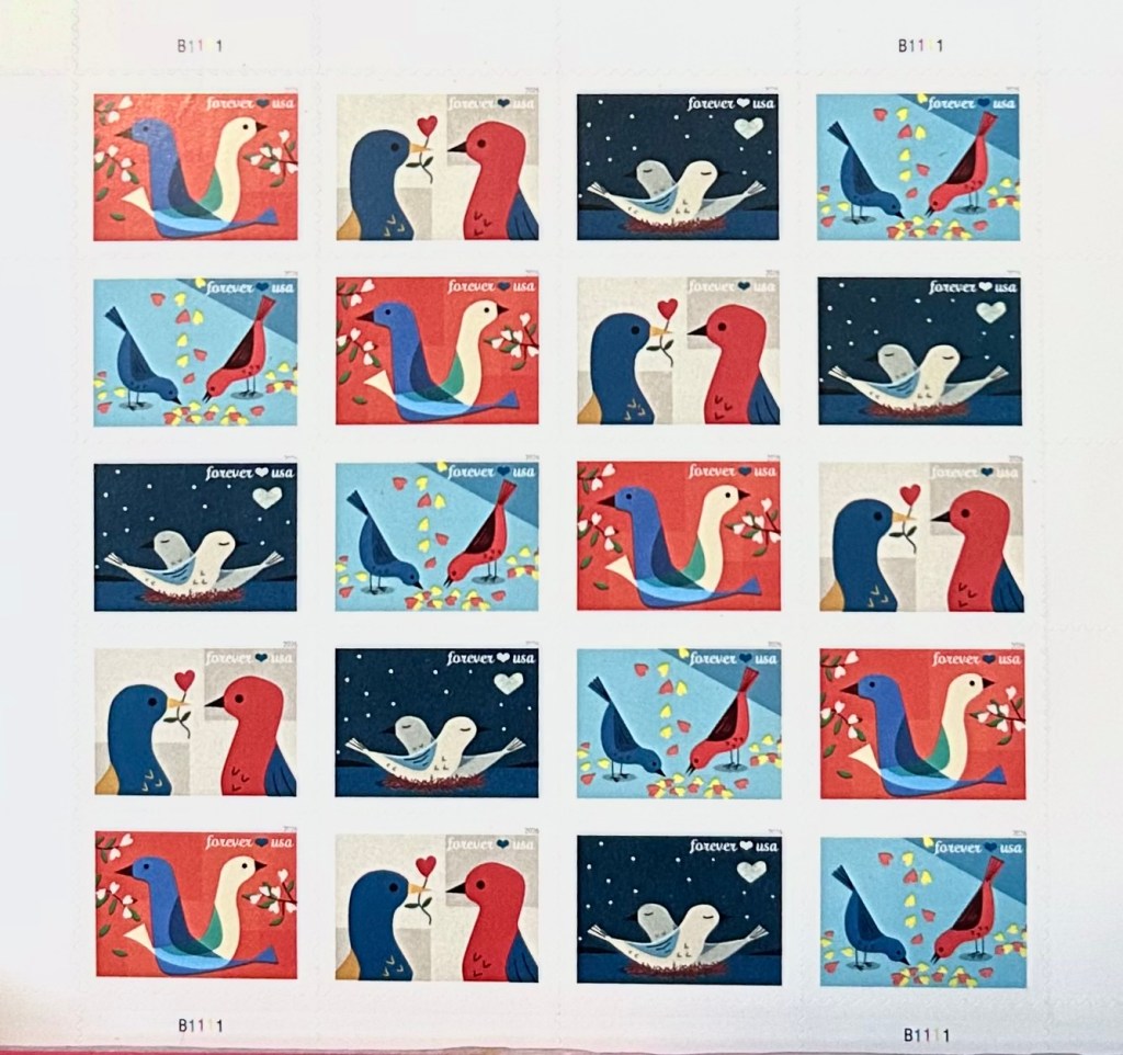 The Love ForeverĀ® stamps feature 4 colorful scenes of birds.