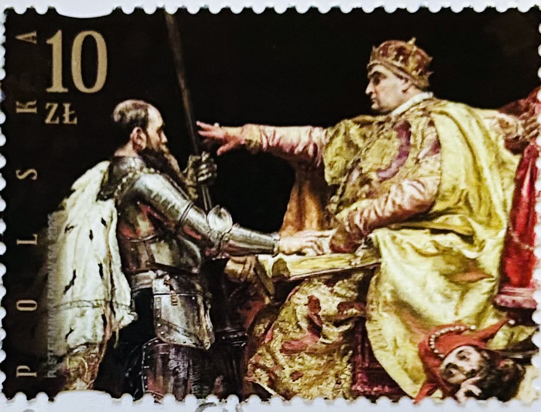 Poland – 2025 Prussian Homage 500th Anniversary. Jan Matejko’s “The Prussian Homage” is a celebrated historical painting created between 1879 and 1882, glorifying this event in Polish history. It depicts Albrecht Hohenzollern kneeling before King Sigismund I in 1525, symbolizing Prussia’s allegiance to the Polish Crown. This act transformed the Teutonic State into the secular Duchy of Prussia, becoming the first Protestant state in Europe and a Polish fief.