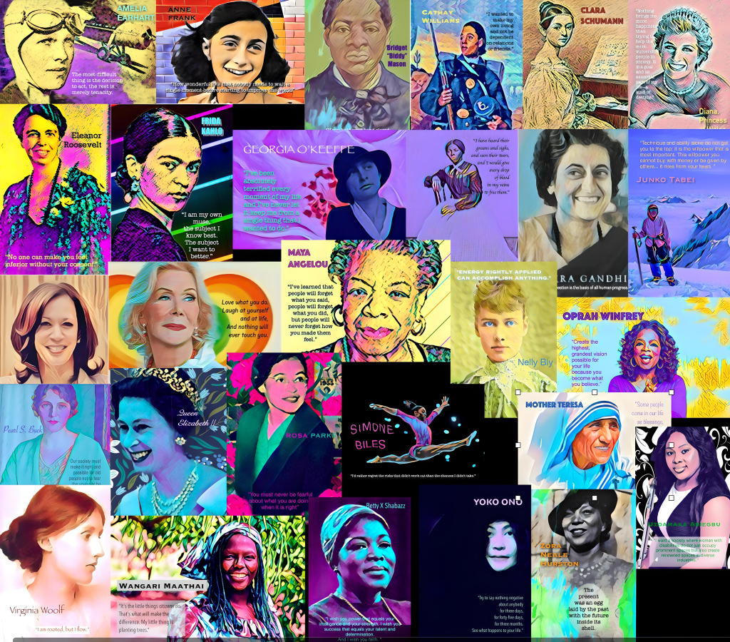 WOMEN AMELIA EARHART ANNE FRANK BOOK LOVER BRIDGET MASON CATHAY WILLIAMS CLARA SCHUMANN PRINCESS DIANA FRIDA KAHLO GEORGIA O’KEEFE KAMALA HARRIS MAYA ANGELOU NUDE ON THE BEACH SIMONE BILES THE ROTUND MERMAID Screenshot ZORA NEALE HURSTON A TO Z SET OF 28